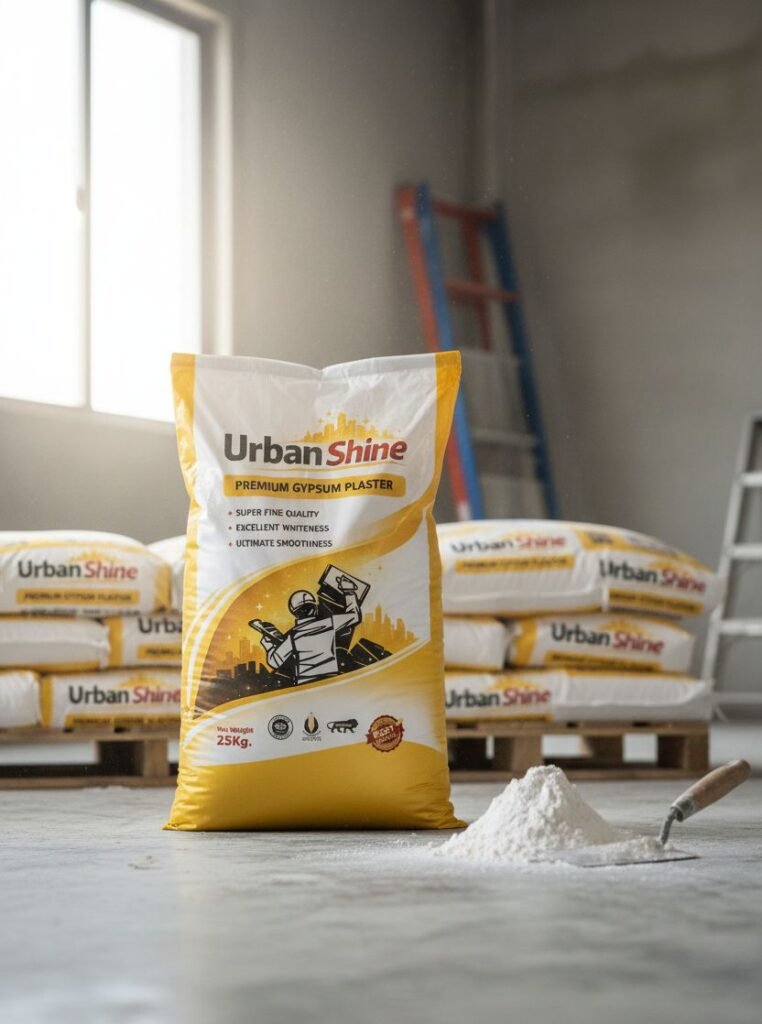 Gypsum plaster is a much more functional, “base” material compared to Urban Shine. It is primarily used to create a smooth, white surface on internal walls and ceilings before painting. Here is how to apply it for a professional finish: 1 Surface Preparation Clean the Wall: Remove all dust, loose particles, and oil. Control Suction: If the wall is very dry (like old brick), lightly spray it with water. This prevents the bricks from “sucking” the moisture out of the plaster too quickly, which causes cracks. Bonding Agent: For smooth concrete surfaces, apply a bonding agent (like a liquid hack aid) to ensure the plaster sticks firmly. Mixing ProcessAdd plaster slowly into the water and mix continuously to create a smooth and lump-free paste. 2 Mixing the Plaster Water First: Always add the gypsum powder to the water, not the other way around Ratio: Usually, it’s a 1:2 ratio (1 part water to 2 parts powder), but check the bag’s specific instructions.. Consistency: Mix thoroughly until it looks like thick cream or paste Timing: Gypsum sets fast (usually within 20–30 minutes). Only mix what you can use immediately. 3 Application (The Two-Coat Method) First Coat: Use a trowel to apply a layer about 6mm to 12mm thick. Press firmly to ensure it bonds with the wall. Leveling: Use a straight edge (aluminum foam/leveler) to flatten the surface while it’s still wet. 4 Finishing & Drying Smoothing: As the plaster starts to set, use a clean trowel with a tiny bit of water to “polish” the surface until it’s glass-smooth. No Sanding Needed: One of the best things about gypsum is that if applied correctly, it doesn’t require sanding like traditional cement plaster. Drying: Let it air dry for 3–4 days before applying any paint. It will turn from a dull greyish-white to a bright, chalky white when ready. Why use Gypsum over Cement? Finish – Superior smooth/white finish ,Rough, needs putty after Time– Sets and dries very fast | Needs 7–14 days of water curing Cracks– Very low shrinkage (less cracks) , High chance of hairline cracks Effort – Direct application to brick/block ,Requires multiple stages Quick Note: Gypsum is strictly for indoor use. Do not use it on exterior walls or in high-moisture areas like bathrooms, as it absorbs water and can soften over time.Would you like advice on which tools are best for a smooth “mirror” finish?